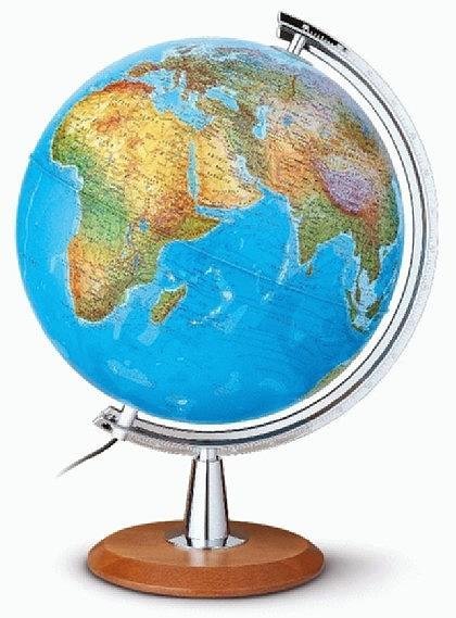 Světelný glóbus, zeměpisná mapa, po rozsvícení mapa politická.