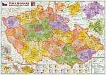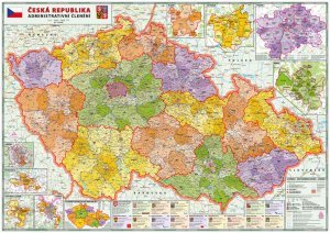 v mapě jsou barevně vyznačeny jednotlivé kraje vč. znaku a loga, správní obvody, silniční, železniční a říční síť, orientační plánky měst, měřítko 1 : 320 000, rozměr 160x 114 cm, oboustranné lamino + očka k zavěšení; součástí mapy je brožura s rejstříkem obcí vč informací k jednotlivým obcím.
