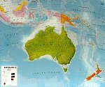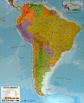 Nejúspěšnější politická mapa světa rozdělená to jednotlivých kontinentů. Barevně výrazné odlišení států, působivý stínovaný reliéf, vlaječky států kontinentu.
