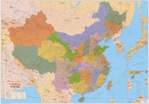 Politická mapa Číny v latince. Největší města dvojjazyčně.
