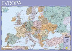 Nástěnná mapa Evropy v měřítku 1 : 4 000 000 je politická mapa s barevným rozlišením jednotlivých států, doplněná aktuálním stavem evropské dálniční sítě a hlavních silničních tahů. Mapa formátu 140 x 100 cm je vytištěna na silném polomatném fotografickém papíru a opatřena dvěma závěsnými lištami.