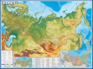 - ve výřezu: mapa časových pásem, mapa federálního rozdělení mapy jsou dostupné v oboustranném silném laminu